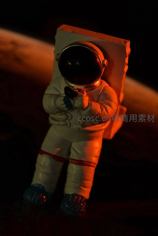 精致的宇航员小模型置身于模拟火星地貌的场景中,暖色灯光勾勒轮廓,仿佛正在执行一场奇幻的星际探索任务。