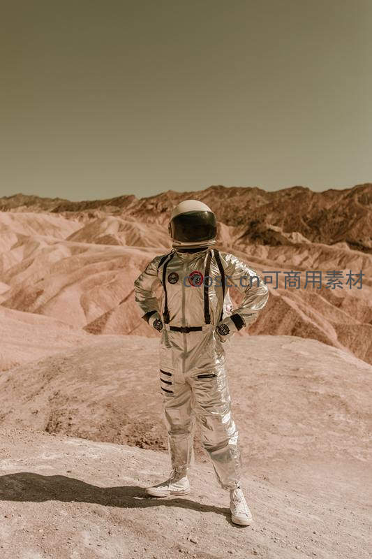 宇航员立于荒漠,仿佛登陆异星