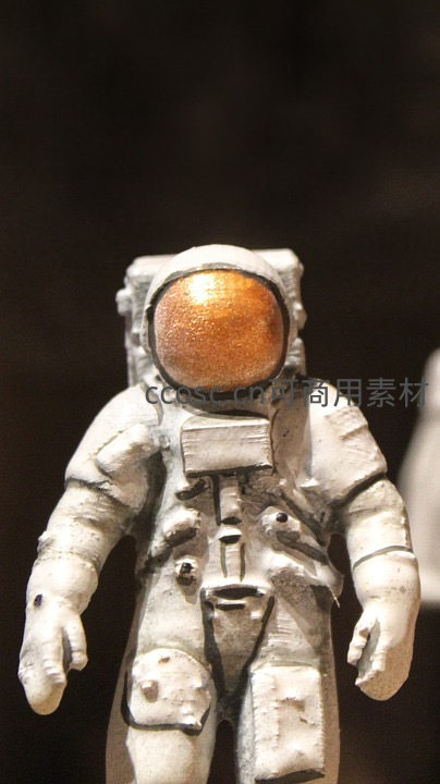 特写镜头下的宇航员微型模型,头盔反射温暖光泽,细节精致,展现手工制作的艺术美感与怀旧科幻情怀。