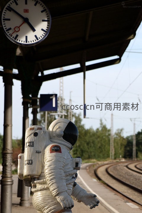 宇航员在火车站台仰望时钟