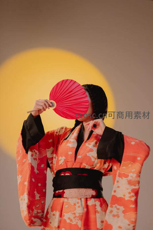 红扇遮面和服美人侧影