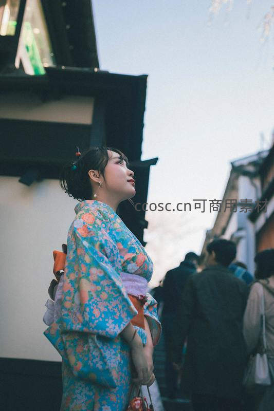街头和服少女仰望天空