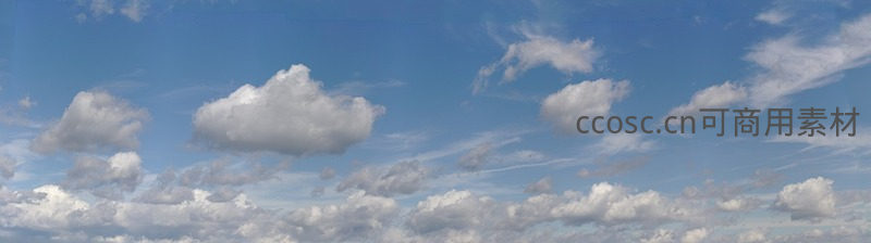 广阔的蓝色天空中,散布着形态各异的白色云朵,它们轻盈地漂浮着,构成了一幅宁静、开阔且令人心旷神怡的画面。