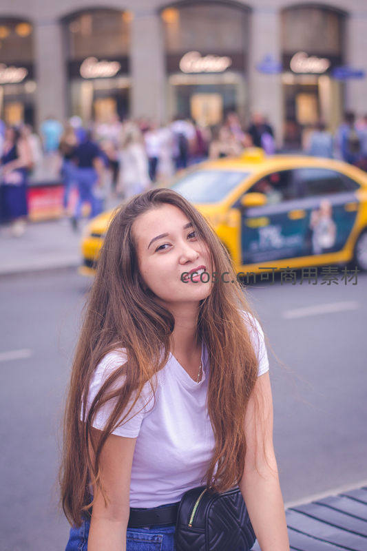 街头巷尾笑容灿烂的异国女孩