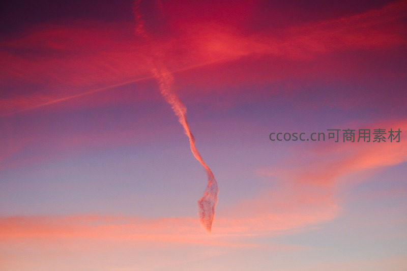 绚烂的红紫色天空中,一条扭曲的航迹如画笔挥洒,与流动的云层交织,形成极具艺术感的抽象天景。