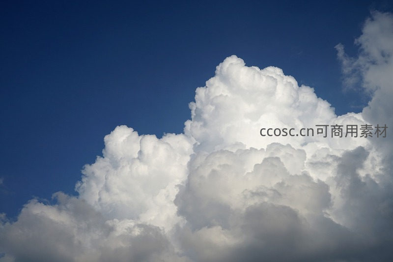 蓬松洁白的巨大积云在深蓝天空中舒展,光影交错,展现出大自然鬼斧神工般的壮丽与宁静。