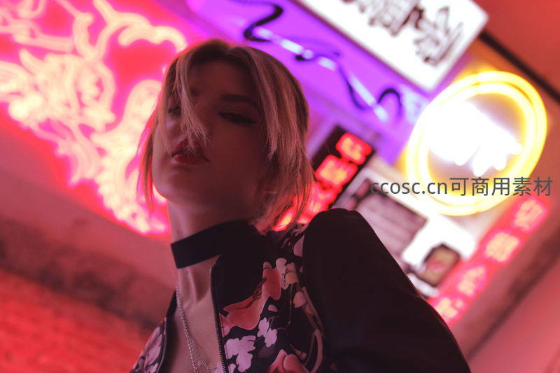 霓虹灯下酷飒金发女郎