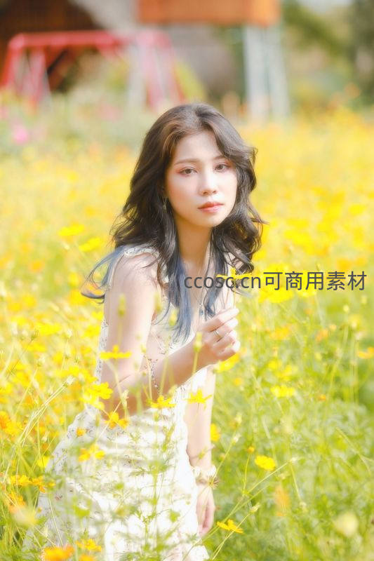 金黄花海中手捧小花的仙气少女