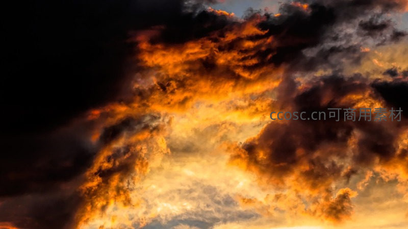 夕阳西下,云层被染成炽热的橙红色,如同燃烧的火焰在天边蔓延,呈现出令人屏息的瑰丽景象。
