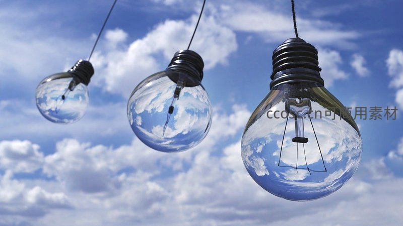 灯泡倒映蓝天白云,创意光影妙趣横生