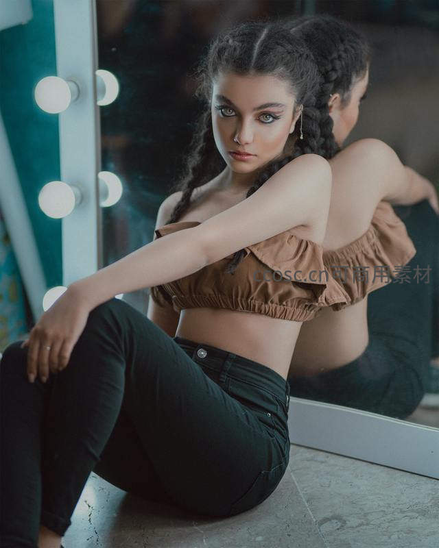 镜前梳妆的少女,光影与时尚交织