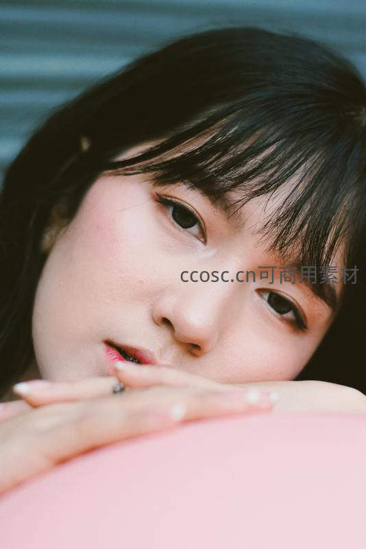 特写少女,托腮凝视镜头