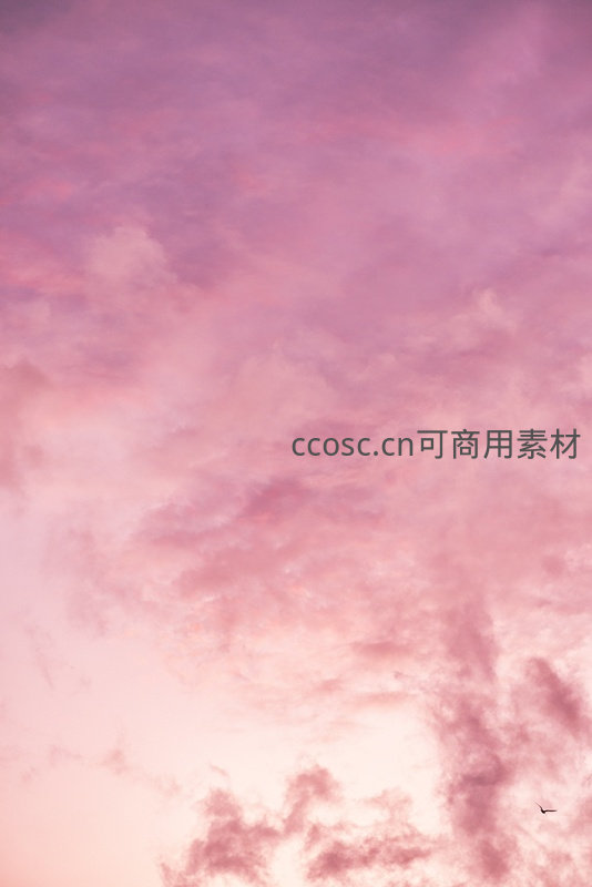 柔和的粉紫色云霞弥漫天际,一只小鸟的剪影轻盈掠过,为这幅宁静唯美的画面增添了一丝灵动与诗意。