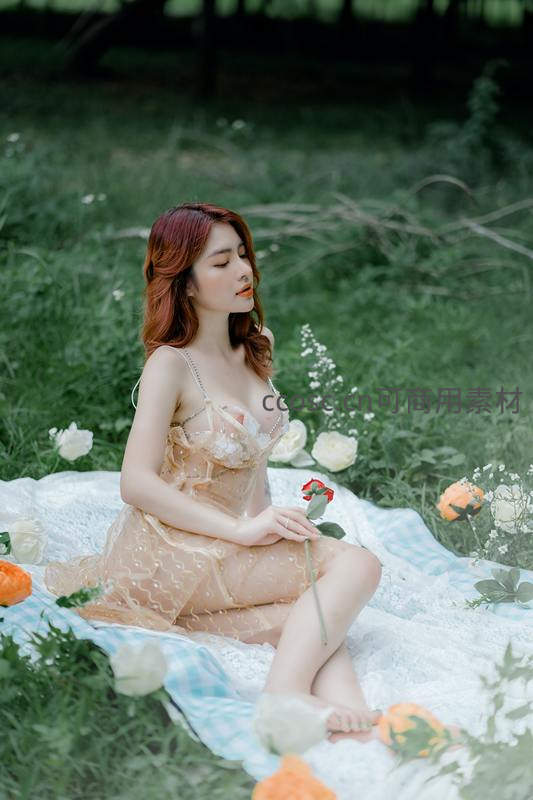 野餐垫上的花漾少女