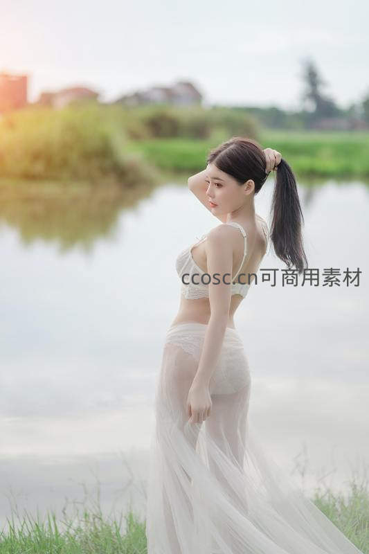 湖畔白纱少女侧影,柔光映衬宁静之美