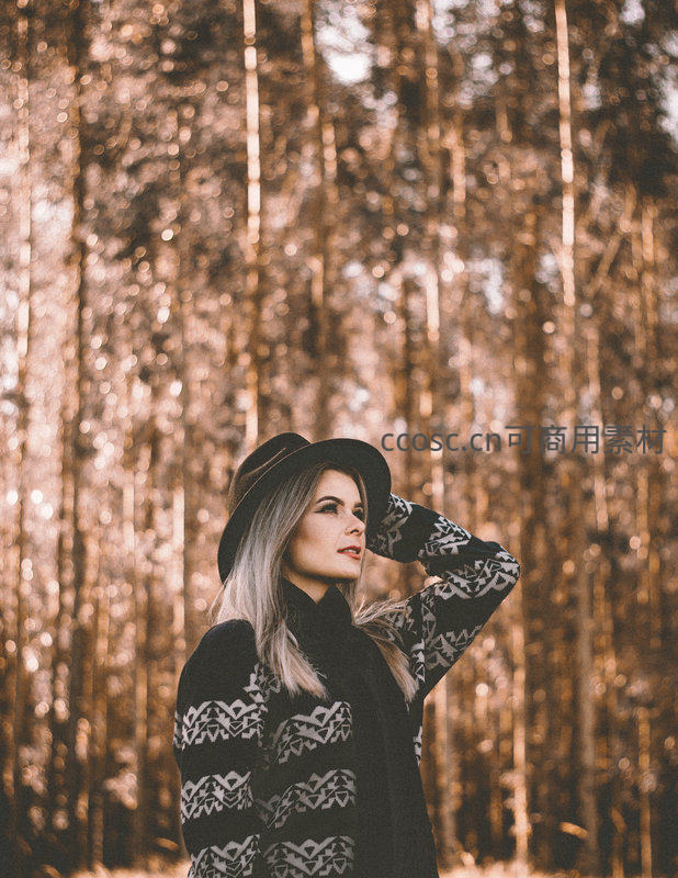 秋日森林中的帽子女孩