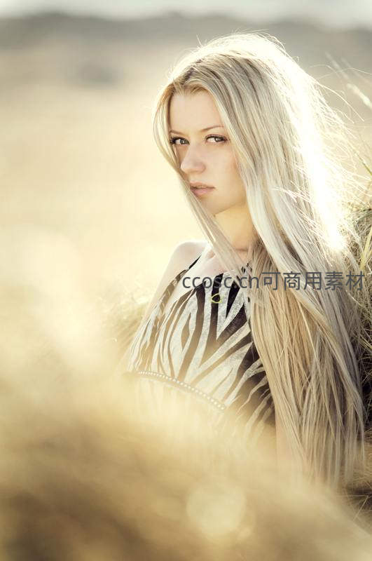 阳光穿透金色麦浪,映照在金发女子脸上,她身着条纹上衣,在田野中回眸凝望,画面充满温暖唯美的诗意。
