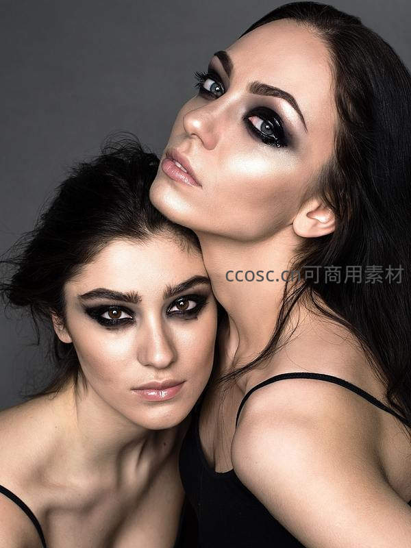 双女浓妆亲密依偎肖像