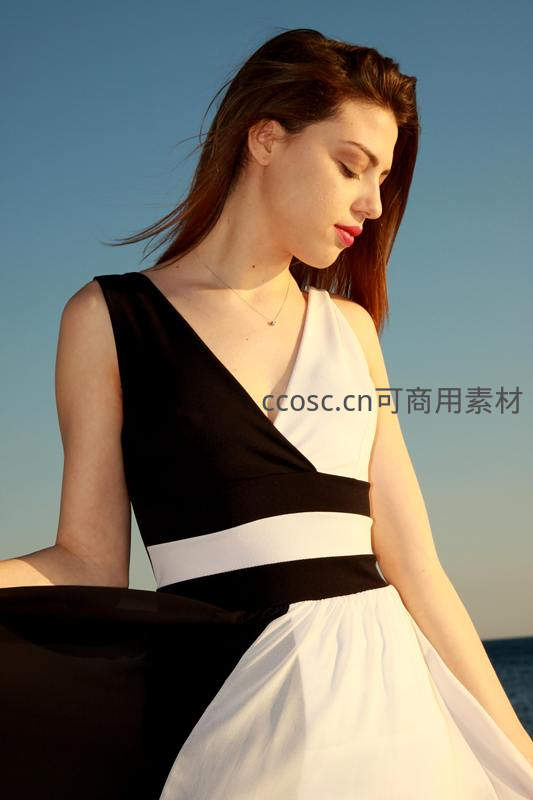 海边黑白色调优雅女性侧影
