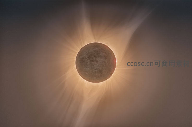 月球完全遮挡太阳,仅剩璀璨的日冕光芒向四周放射,形成震撼的“钻石环”效应,展现了宇宙运行的壮丽与精确。