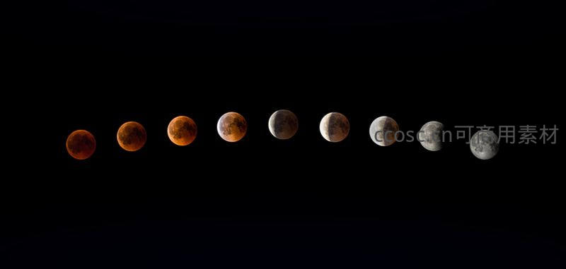 从满月到血月再到复圆,完整记录了月全食过程中的每一个阶段,展现了月球在地球阴影中色彩与形态的奇妙变化。