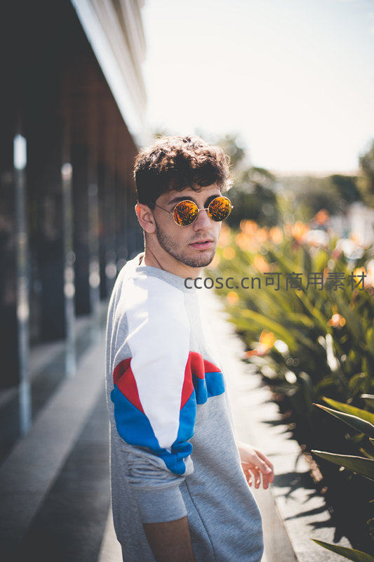 街头时尚青年戴墨镜回眸