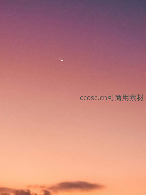 夕阳西下,天空被染成梦幻的粉紫色,一弯新月悄然悬挂,温柔地见证着白昼向黑夜的过渡。