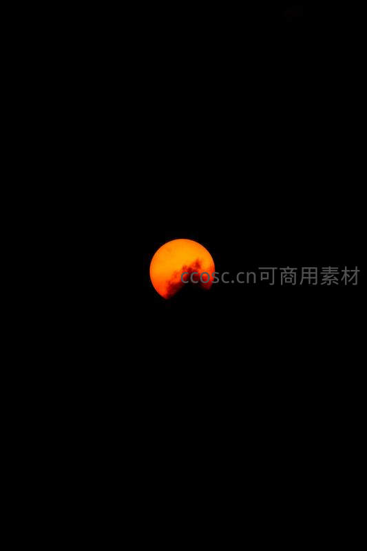 一轮被地球阴影染成暗红色的月亮悬于漆黑天幕,边缘被薄云轻轻拂过,营造出一种神秘而庄严的氛围。