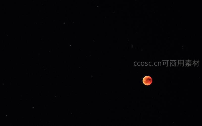 在漆黑如墨的夜空中,一轮血红色的月亮独自悬挂,周围散布着微弱的星光,景象神秘而壮观。