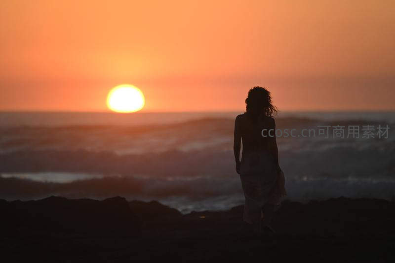 夕阳下的海岸剪影女神