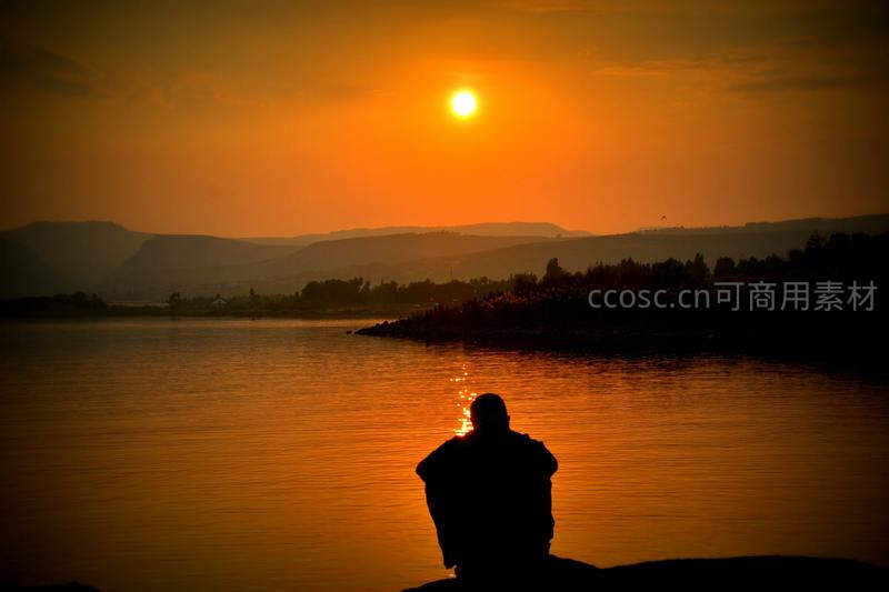 湖畔夕阳,独坐冥想