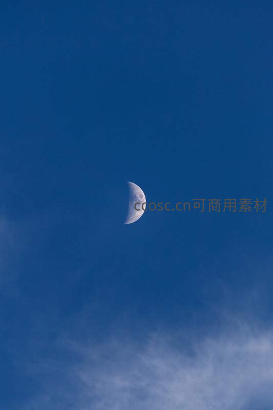 一弯清月悬于深邃的蓝色天幕,下方轻纱般的云层飘渺流动,营造出静谧而梦幻的夜空氛围。