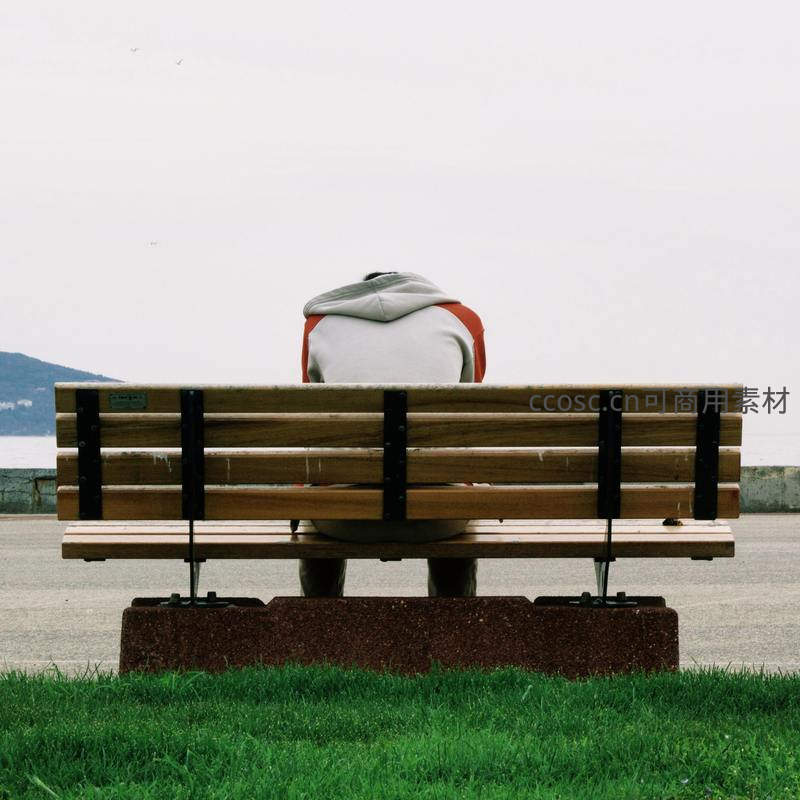 公园长椅独坐,背影沉思望远方
