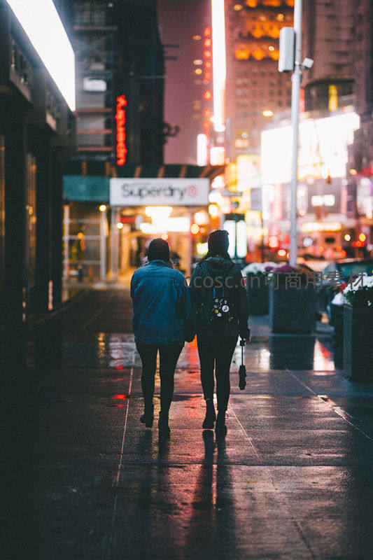 雨夜霓虹,情侣漫步繁华都市街头