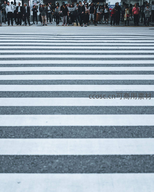 繁忙的十字路口,众多行人正有序通过宽阔的斑马线,背景是现代化的城市建筑与车流,展现都市生活的节奏与秩序。