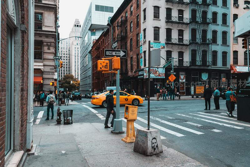 纽约街头黄出租车与行人匆匆