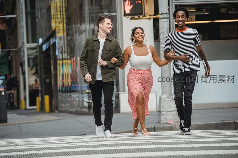 三友欢笑漫步斑马线