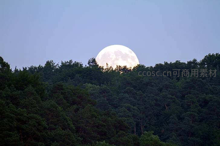 满月从森林树梢缓缓升起