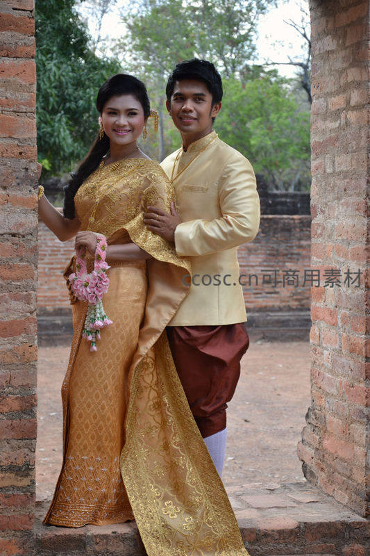 泰式情侣身着传统礼服合影