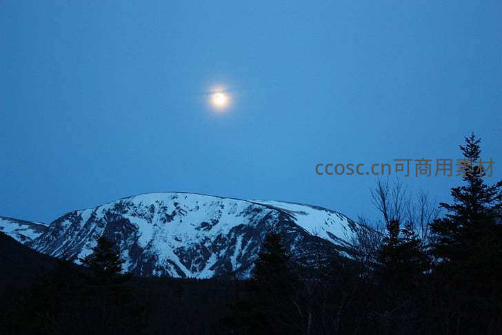 雪峰映月,寒夜静谧如画