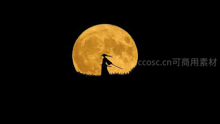 武士剪影,金月下的孤寂背影