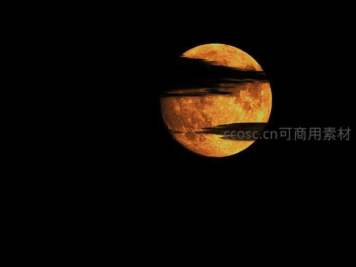 橙红满月穿云而过,夜空壮丽奇景