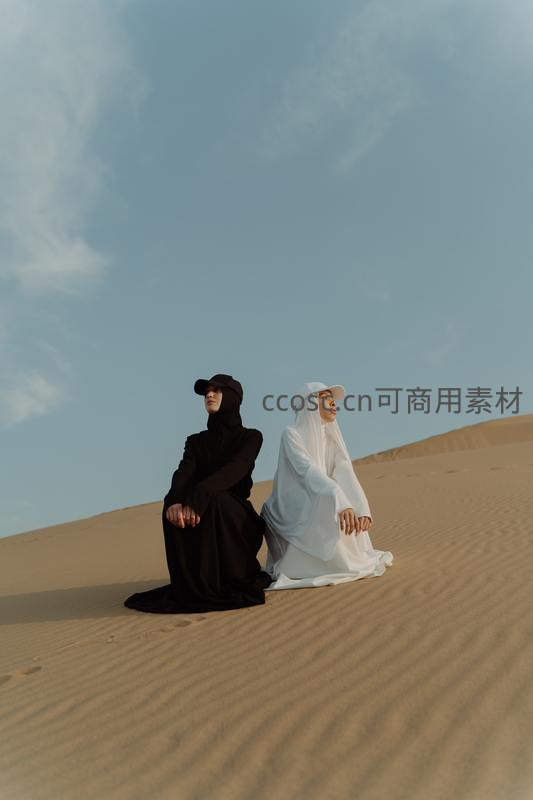 黑白长袍静坐沙丘,对望苍穹诉寂寥
