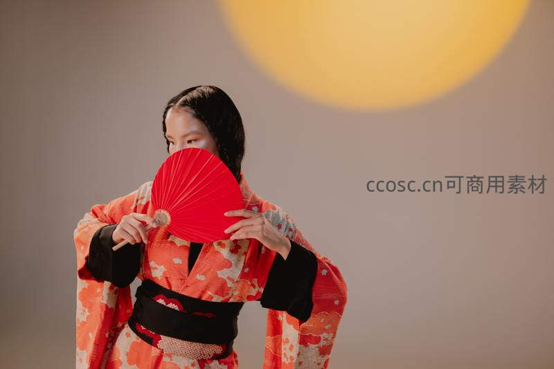 红扇遮面的和风美人
