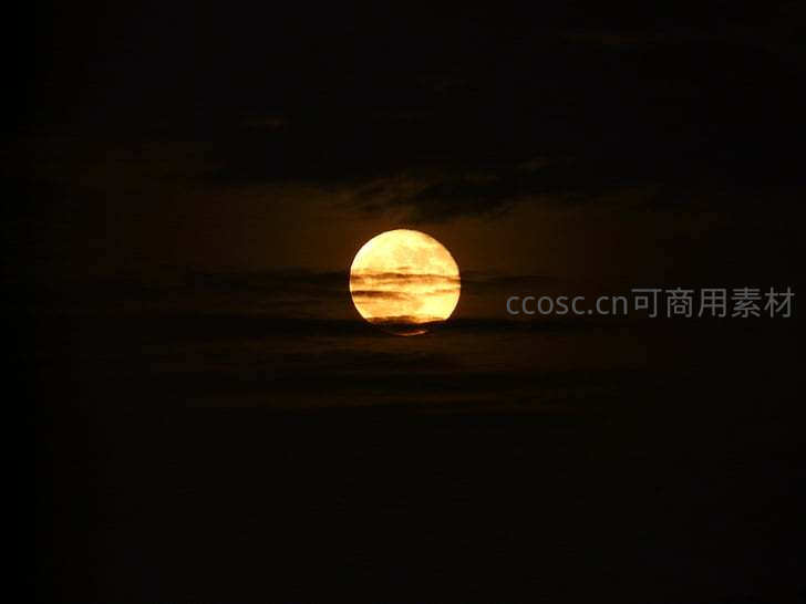 一轮金黄色的满月从厚重云层中缓缓升起,光芒穿透云隙,照亮夜空,呈现出辉煌而震撼的自然奇观。