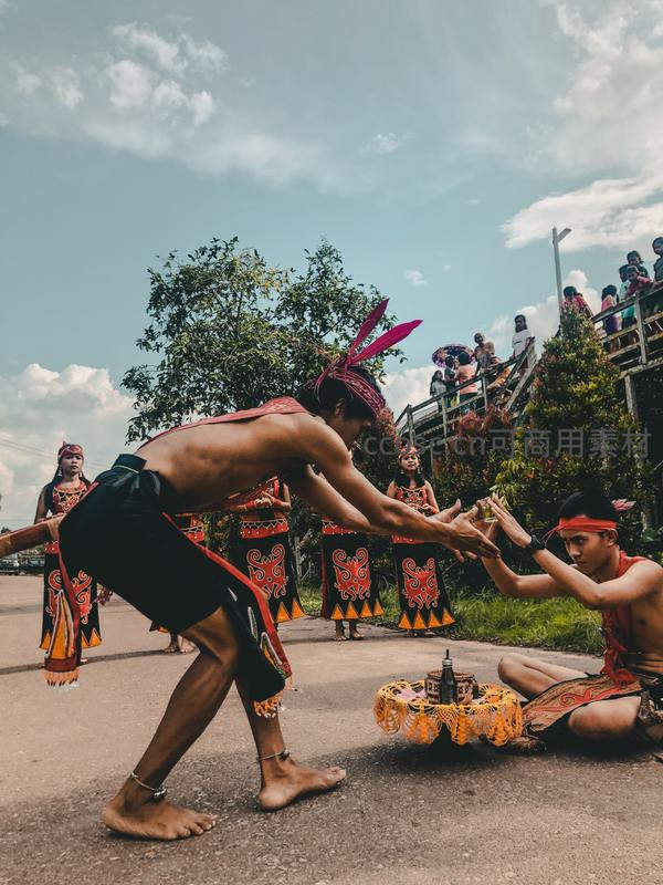 街头传统仪式中的部落舞者