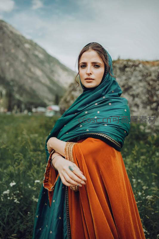 山野间身披绿纱的异域女子