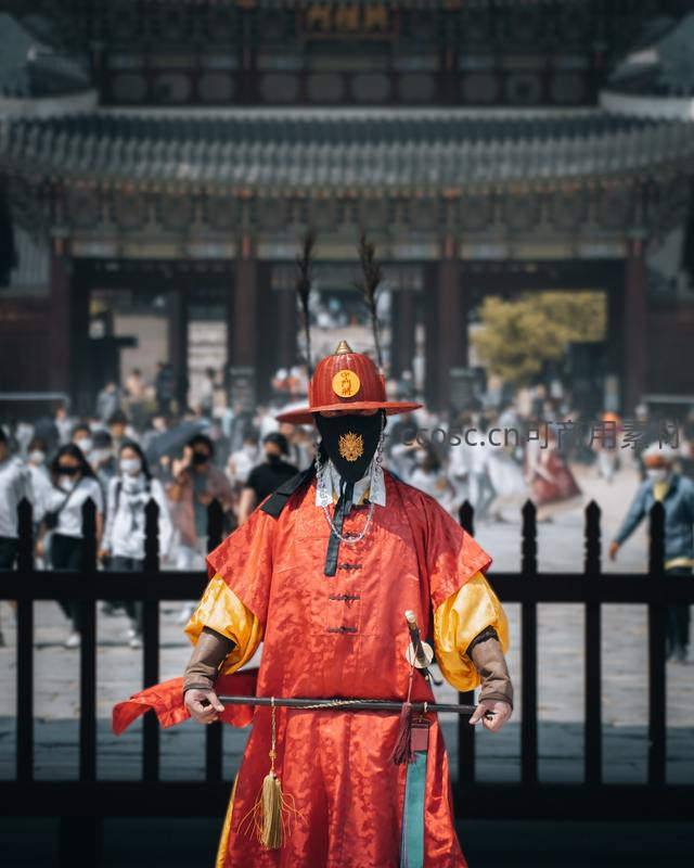 韩国传统卫兵守门场景
