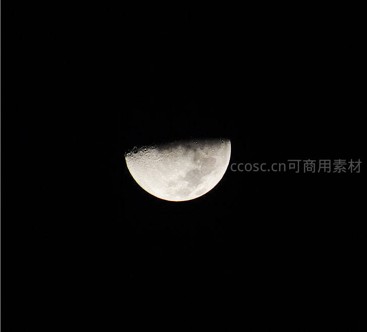 在纯粹的黑色背景下,一轮半边月亮显得格外明亮突出,其表面细节清晰可见,强烈的明暗对比凸显了宇宙的浩瀚与宁静。