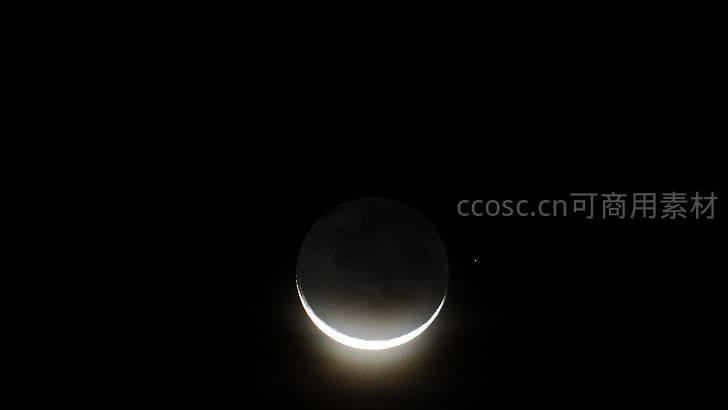 漆黑的夜空中,一弯纤细的新月散发着柔和的光辉,显得格外静谧而孤寂。